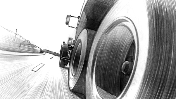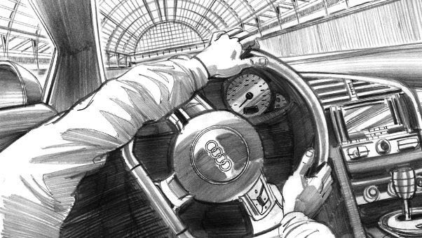 Davis Lisboa, “Audi”, 2011, lápiz sobre papel | pencil on paper, Photoshop, Procreate, 1476 x 831 px, DDB, Barcelona, España | Spain