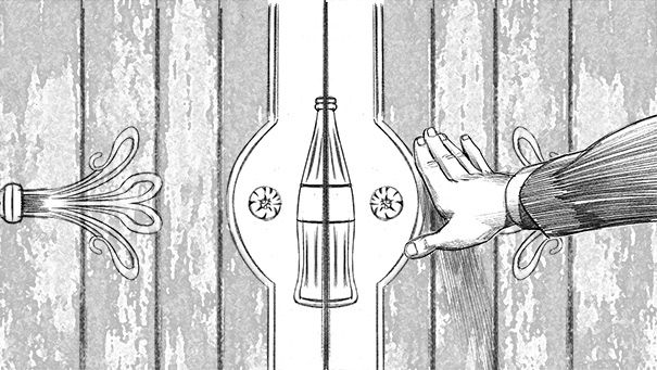 Coca-Cola, 2015, pencil on paper and Photoshop, 1476x831, Mil Vueltas (Madrid, Spain)