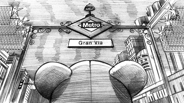 Davis Lisboa, “Metro de Madrid”, 2017, lápiz sobre papel | pencil on paper, Photoshop, 1476 x 831 px, Grow, Madrid, España | Spain