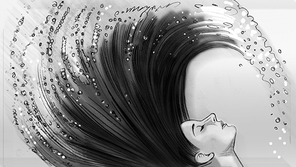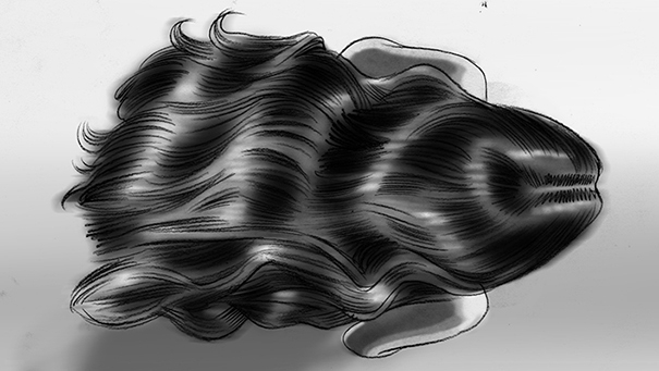 Davis Lisboa, “Pantene”, 2017, lápiz sobre papel | pencil on paper | Photoshop, 1476 x 831 px, Smile, Barcelona, España | Spain