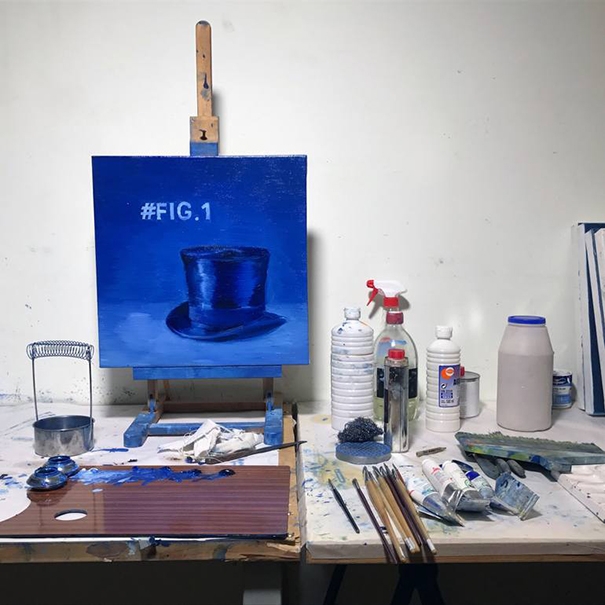 Davis Lisboa, “Marcel Broodthaers 15", 2018, óleo sobre lienzo, 50 x 50 cm | oil on canvas, 19.69 x 19.69 in