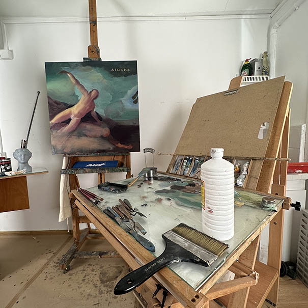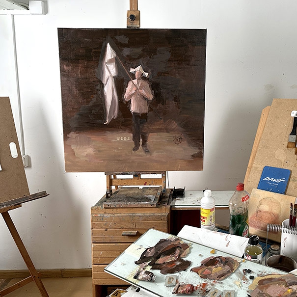 Davis Lisboa, “Marcel Broodthaers 18 (M.B.)”, 2023, óleo sobre lienzo, 50 x 50 cm | oil on canvas, 19.68 x 19.68 in