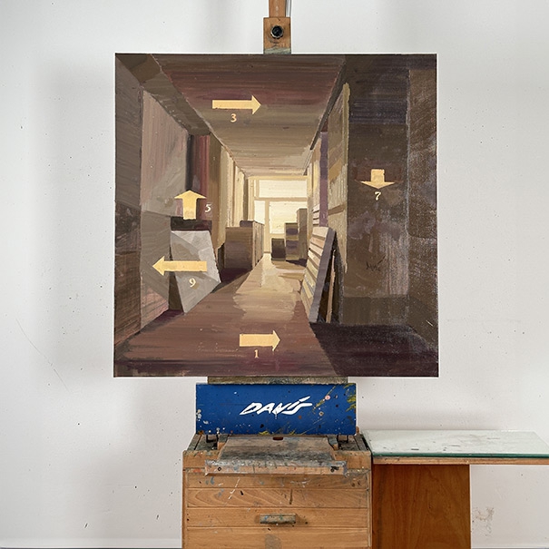 Davis Lisboa, “Musée de l'Aigle Moderne 16 (De Haan)”, 2024, óleo sobre lienzo, 80 x 80 cm | oil on canvas, 31.50 x 31.50 in