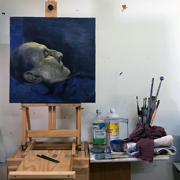 Davis Lisboa, “Marcel Duchamp 15 (dead)”, 2019, óleo sobre lienzo, 50 x 50 cm | oil on canvas, 19.69 x 19.69 in