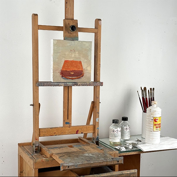 Davis Lisboa, “Boîte-en-valise 14”, 2021, óleo sobre lienzo, 20 x 20 cm | oil on canvas, 7.87 x 7.87 in