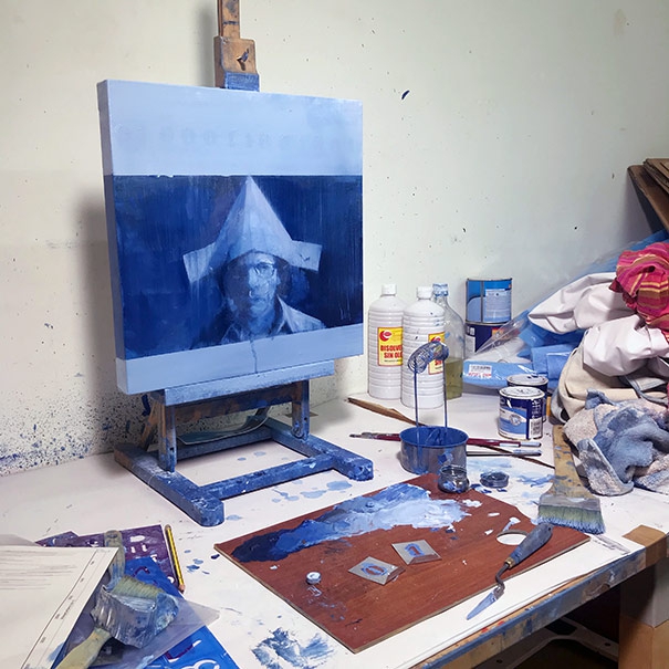 Davis Lisboa, “Marcel Broodthaers #9", 2017, óleo sobre lienzo, 40 x 40 cm | oil on canvas, 15.75 x 15.75 in