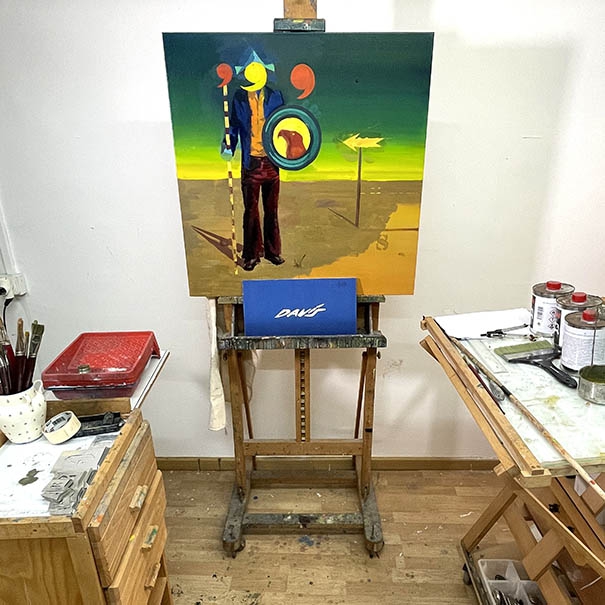 Davis Lisboa, "Robert Filliou 29 (Virgulino)", 2023, óleo sobre lienzo, 50 x 50 cm | oil on canvas, 19.69 x 19.69 in