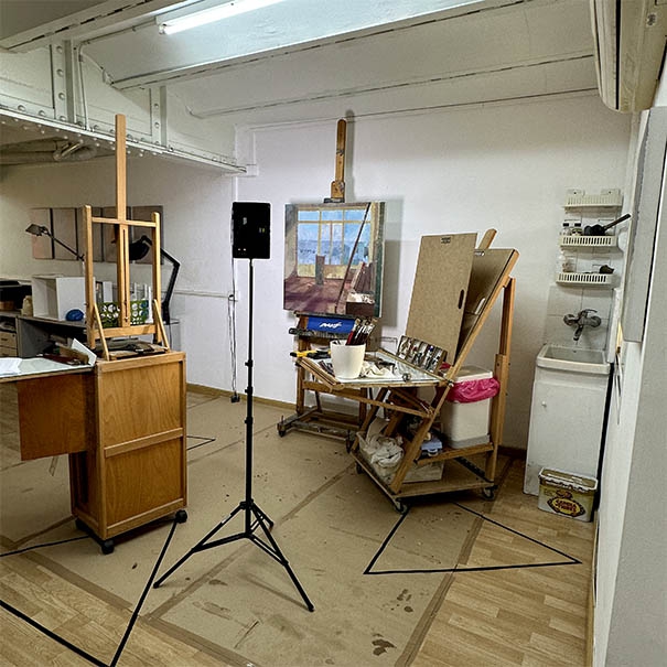 "Robert Filliou 23 (Museum)", 2021, óleo sobre lienzo, 70 x 70 cm | oil on canvas, 27.56 x 27.56 in