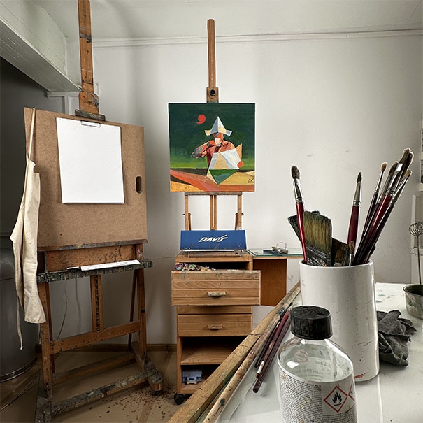 Davis Lisboa, "Robert Filliou 28", 2023, óleo sobre lienzo, 50 x 50 cm | oil on canvas, 19.69 x 19.69 in