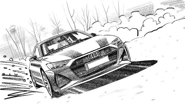 Davis Lisboa, “Audi”, 2020, lápiz sobre papel | pencil on paper, Photoshop, Procreate, 1476 x 831 px, Ogilvy, Barcelona, España | Spain