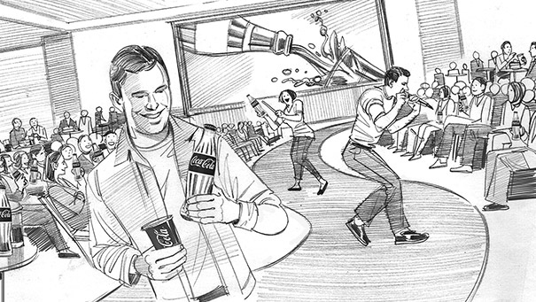 Coca-Cola, 2015, pencil on paper and Photoshop, 1476x831, Mil Vueltas (Madrid, Spain)