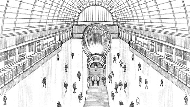 Davis Lisboa, “Metro de Madrid”, 2017, lápiz sobre papel | pencil on paper, Photoshop, 1476 x 831 px, Grow, Madrid, España | Spain