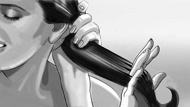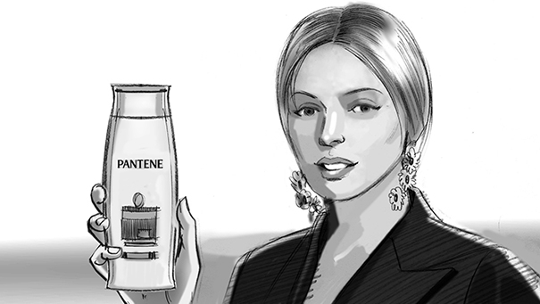 Davis Lisboa, “Pantene”, 2017, lápiz sobre papel | pencil on paper | Photoshop, 1476 x 831 px, Smile, Barcelona, España | Spain