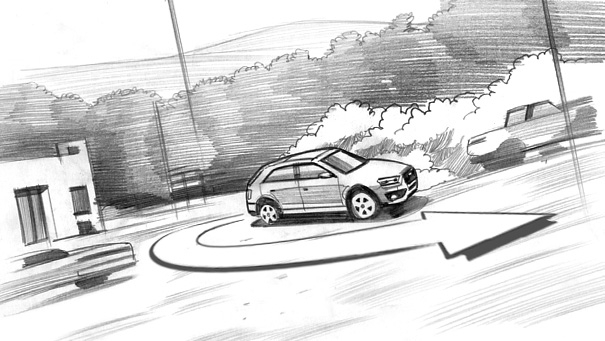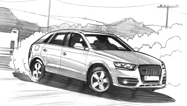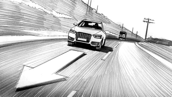 Davis Lisboa, "Audi", 2011, lápiz sobre papel | pencil on paper | Photoshop, 1476 x 831 px, DDB Barcelona, España | Spain