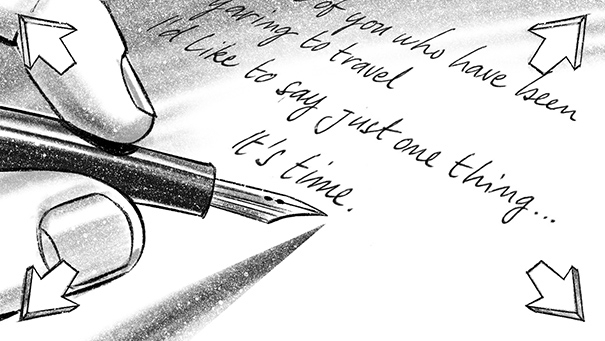 Davis Lisboa, “La Vanguardia”, 2015, lápiz sobre papel | pencil on paper, Photoshop, 1476 x 831 px, Ideas Agitadas, Barcelona, España | Spain