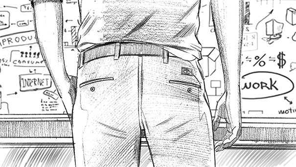Davis Lisboa, “Dockers”, 2019, lápiz sobre papel | pencil on paper, Photoshop, 1476 x 831 px, SantaMarta&Astorga, Barcelona, España | Spain