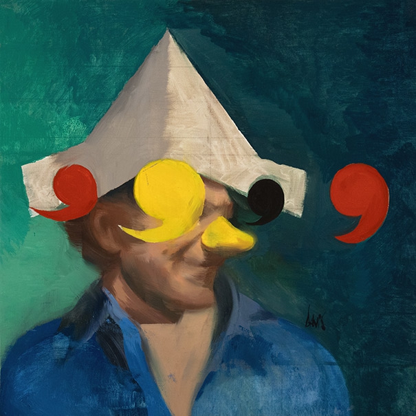 Davis Lisboa, "Robert Filliou 29 (Virgulino)", 2023, óleo sobre lienzo, 50 x 50 cm | oil on canvas, 19.69 x 19.69 in