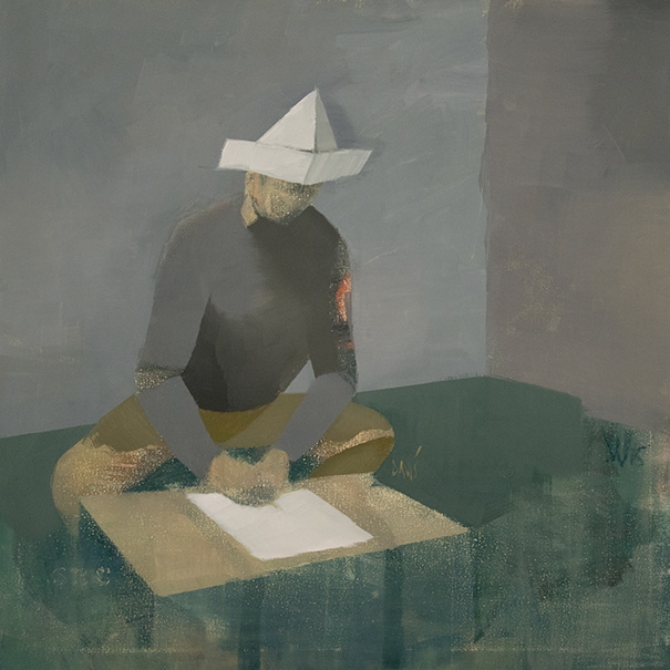 Davis Lisboa, “Robert Filliou 18”, 2018, óleo sobre lienzo, 40 x 40 cm | oil on canvas, 15.75 x 15.75 in