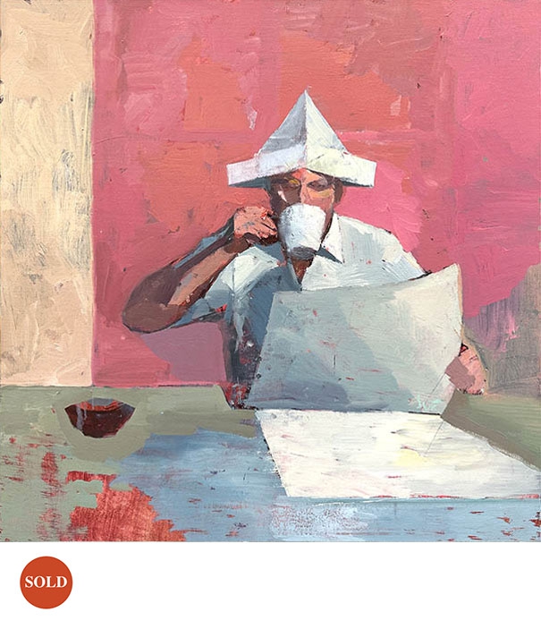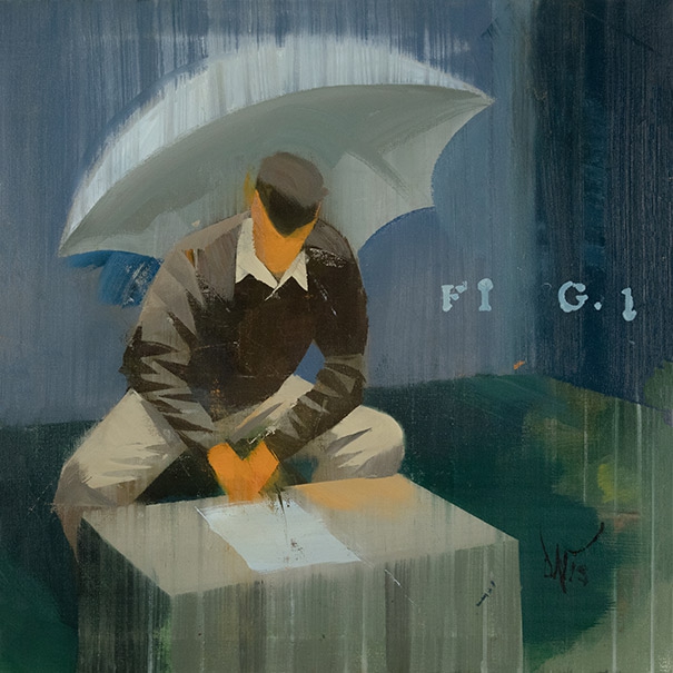 Davis Lisboa, “Musée des Aigles Modernes 18 (Keep Dry)”, 2024, óleo sobre lienzo, 80 x 80 cm | oil on canvas, 31.50 x 31.50 in