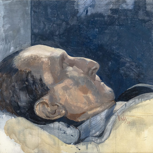 Davis Lisboa, “Marcel Duchamp 15 (Dead)”, 2019, óleo sobre lienzo, 50 x 50 cm | oil on canvas, 19.69 x 19.69 in