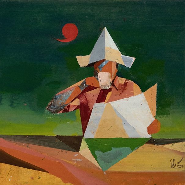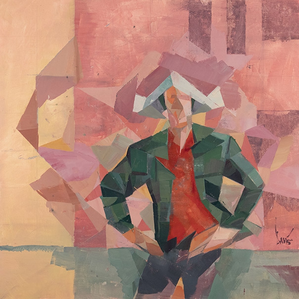 Davis Lisboa, "Robert Filliou 30 (Métis)", 2023, óleo sobre lienzo, 50 x 50 cm | oil on canvas, 19.69 x 19.69 in