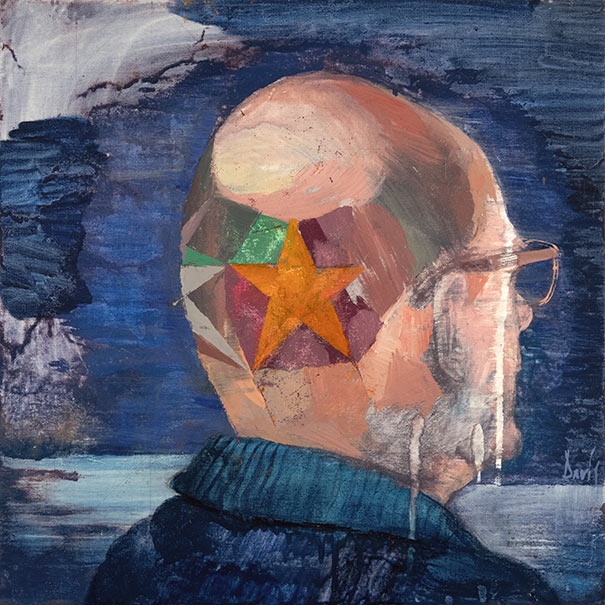 Davis Lisboa, “Robert Filliou 15”, 2017, óleo sobre lienzo, 50 x 50 cm | oil on canvas, 19.69 x 19.69 in