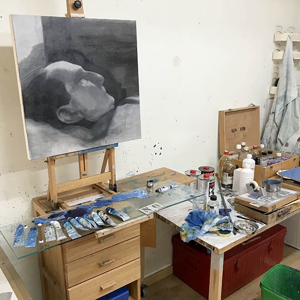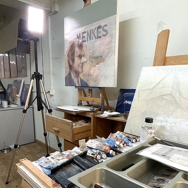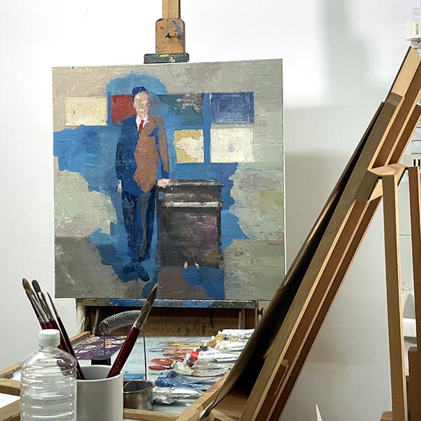 Davis Lisboa, “Self-portrait 3 (Tonsure, Marcel Duchamp)”, 2021, óleo sobre lienzo, 50 x 50 cm, | oil on canvas, 19.69 x 19.69 in
