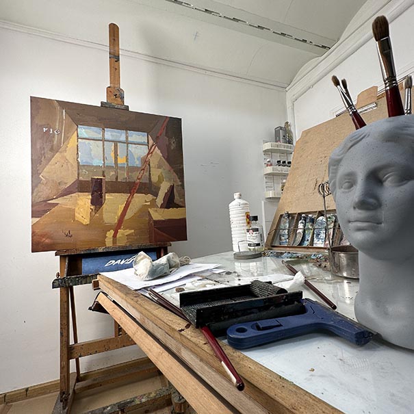 Davis Lisboa, “Musée de l'Aigle Moderne 16 (De Haan)”, 2024, óleo sobre lienzo, 80 x 80 cm | oil on canvas, 31.50 x 31.50 in