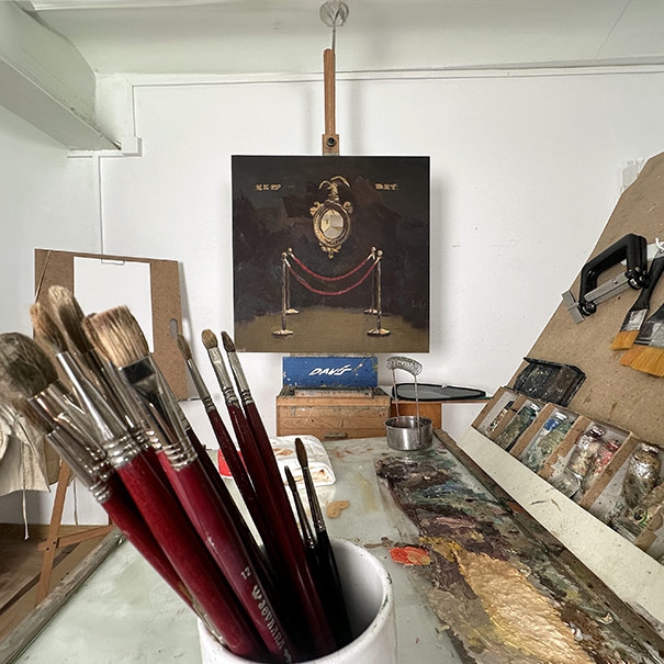 Davis Lisboa, “Marcel Broodthaers 18 (M.B.)”, 2023, óleo sobre lienzo, 50 x 50 cm | oil on canvas, 19.68 x 19.68 in